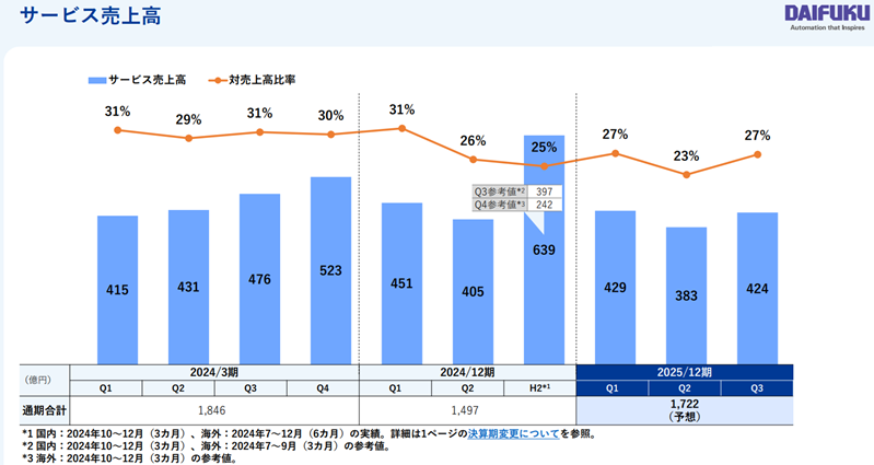ダイフクの売上高のうち、約3割をサービス売上高が占めており、安定した業績につながっている。