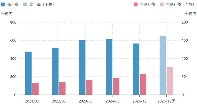 2025年12月期も増収増益が予想されており、過去最高を更新する見通しだ。