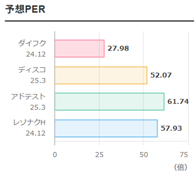 ダイフクが27倍台であるのに対し、他の銘柄は50倍を超える。