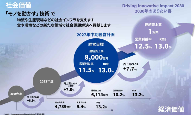 ダイフクが発表した中期経営計画では、2030年度に売上1兆円、営業利益率12.5%とある。