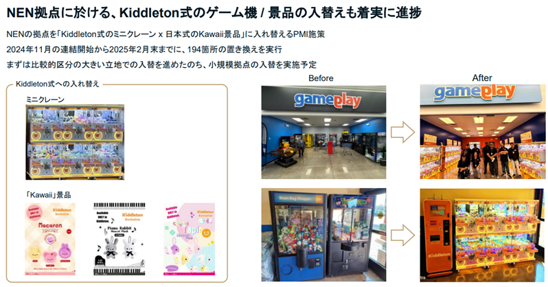 現地で買収したゲームセンター等の機材・景品を入れ替え、需要を掘り起こすことに成功した。