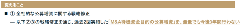 M&A以外に増資を行う理由はないため、今後3年間は増資が行われないと解釈して良い。
