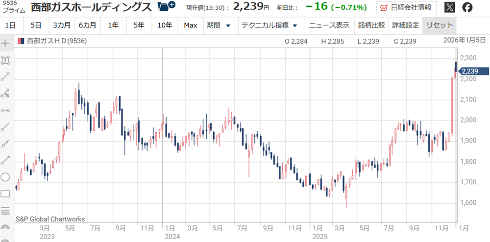 株主優待を新設した西部ガスホールディングス(以下、西部ガスHD)が注目銘柄として浮上した。