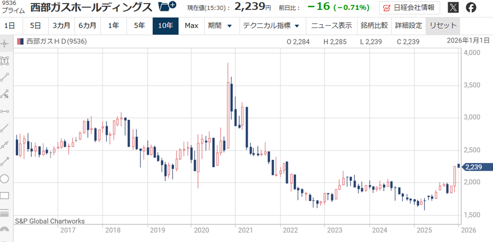これほどの利回りの銘柄で、かつ西部ガスHDと同等以上の事業基盤を持っている銘柄は挙げることが難しい。
