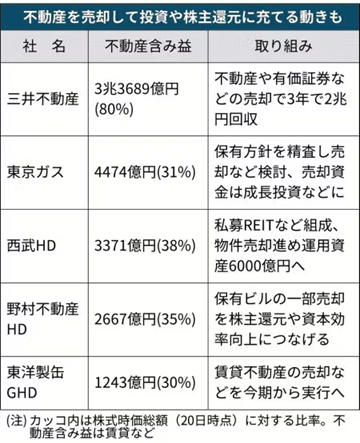 下図のように不動産含み益が開示や取材を通じて明らかになった企業もあり、国内企業の不動産含み益はたびたび買い材料となっている。