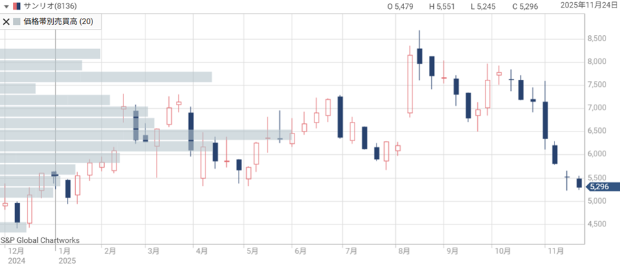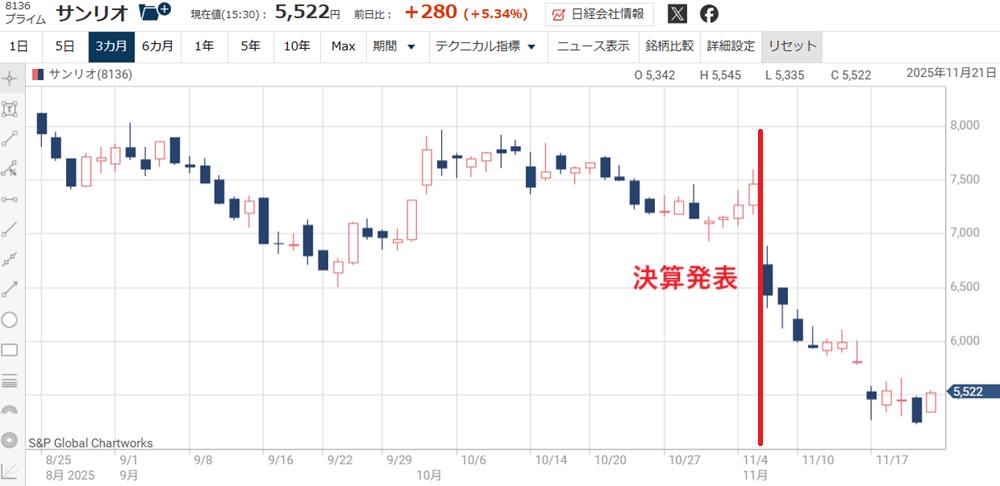好調だったサンリオの株価が急落し始めたのは2025年11月6日だ。