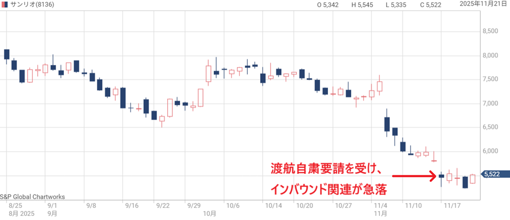 日中関係悪化はサンリオにとって大きな悪材料だ。