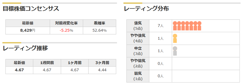 | モルガンスタンレー | 強気 | 8600円 → 8200円 |
