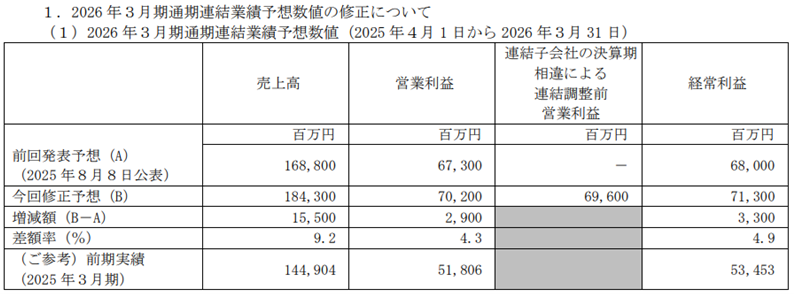 | 2026年3月期 | 170,0億円 | 68,0億円 | 480億円 | 202.2円 |